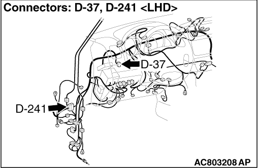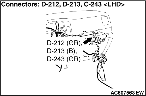 (4)Disconnect engine-A/T-ECU <6G7-A/T> connector D-212 or engine-ECU connector <6G7-M/T>