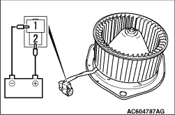 When battery voltage is applied between the terminals, check that the motor operates. Also, check that there is no abnormal noise.