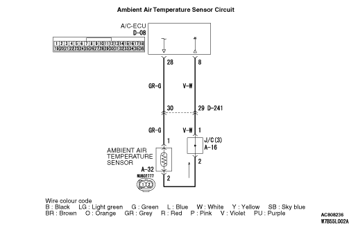 This code is set when the ambient air temperature sensor circuit is short (Code No.B1011)