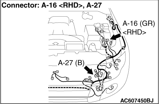 note Prior to the wiring harness inspection, check intermediate connector D-241 and joint connector A-16 <RHD>, and repair if necessary.