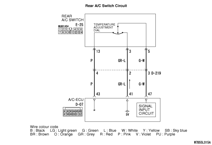 When the temperature adjustment of rear A/C cannot be performed, the circuit between the rear A/C switch and A/C-ECU may have a failure.