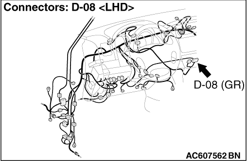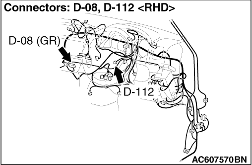 STEP 1. Connector check: D-08 A/C-ECU connector and D-112 heater water temperature sensor connector
