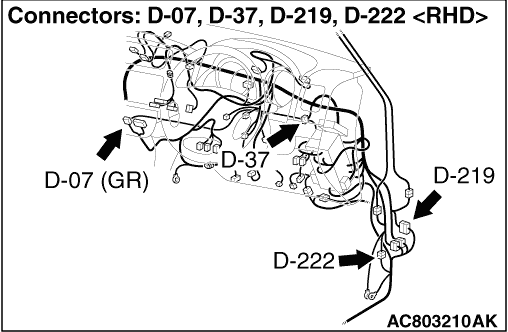 (1)Disconnect the connector, and measure at the wiring harness side.