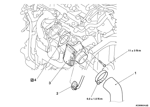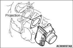 Install the throttle body gasket as its projection is in the direction shown.
