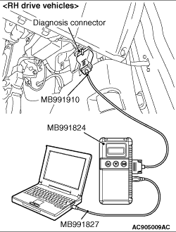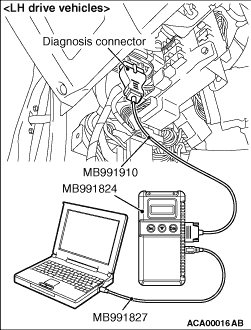 2.Turn the ignition switch to "LOOK" (OFF) position, and connect the diagnosis connector