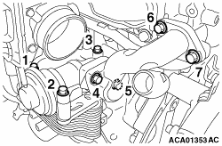 4.Tighten each mounting bolt to the specified torque in the order as shown in the figure. Tightening torque: 20 ± 2 N·m