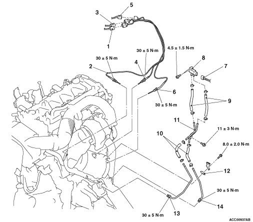 No.2 exhaust gas temperature sensor connector connection
