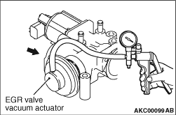 2.Connect the hand vacuum pump with the nipple of the vacuum actuator of the EGR valve. 3.Gradually applying the vacuum pressure, confirm through the hole produced by removing