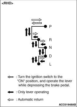 lever is moved from the "N" to "R" range. 6.Stop the engine. 7.Turn ON the ignition switch, and move the selector lever from the P to R range. Check