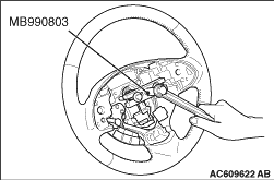 Use special tool steering wheel puller (MB990803) to remove the steering wheel.