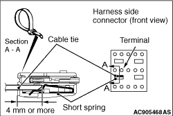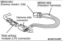 (3)Connect special tool dummy resistor (MB991865) to special tool resistor harness (MB991866). (4)| caution |