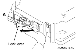 the lock lever to the direction of the arrow to release the lock lever, and disconnect the SRS-ECU
