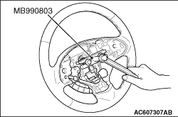 2.Using special tool steering wheel puller (MB990803), remove the steering wheel assembly as shown in the figure.