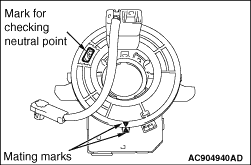 • When aligning the clock spring neutral position mark, perform with the clock spring independently. If performed with the steering wheel sensor installed, the steering wheel sensor may be damaged.